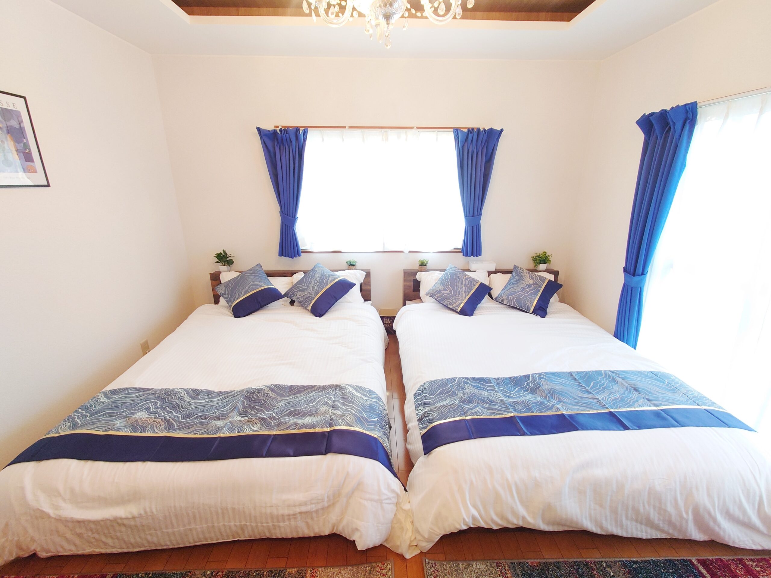 • 2階:セミダブルベッド2台(6畳洋室)、マットレス+敷布団セット3組(6畳和室)