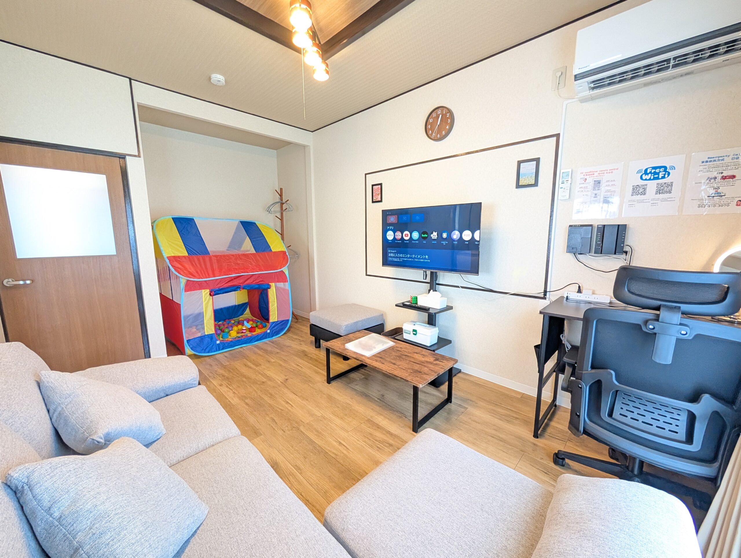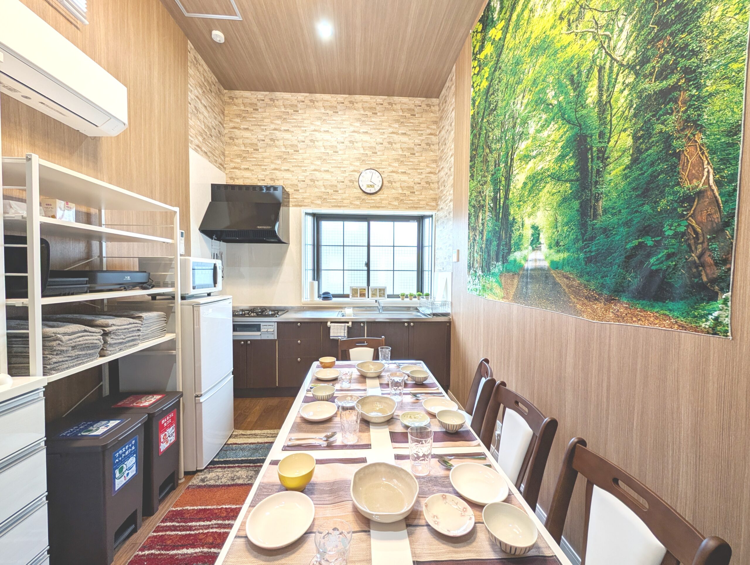 - 設備:WIFI、 全室エアコン、冷蔵庫、洗濯乾燥機、電子レンジ、水洗トイレ(ウォシュレット)、炊飯器、電気ケトル、ヘアドライヤー、ホットプレート、オーブン、フライパン、電気グリル鍋、食器類、掃除機